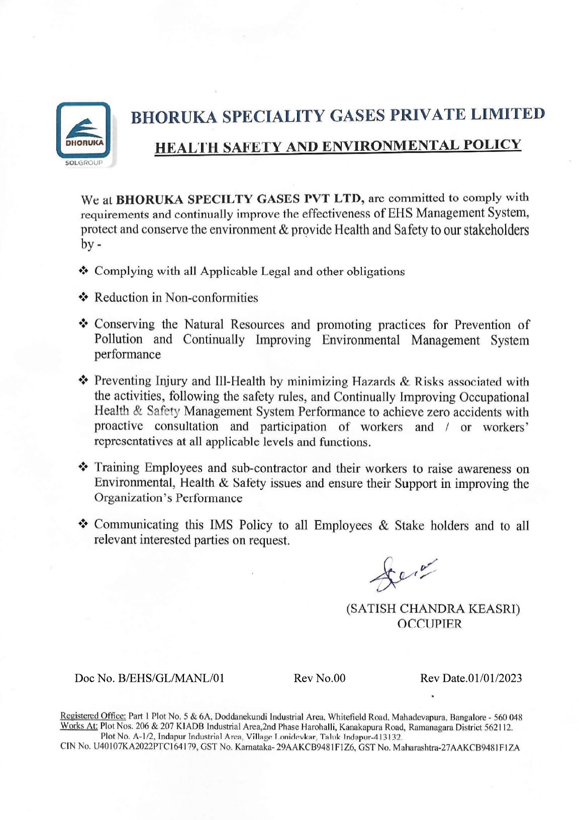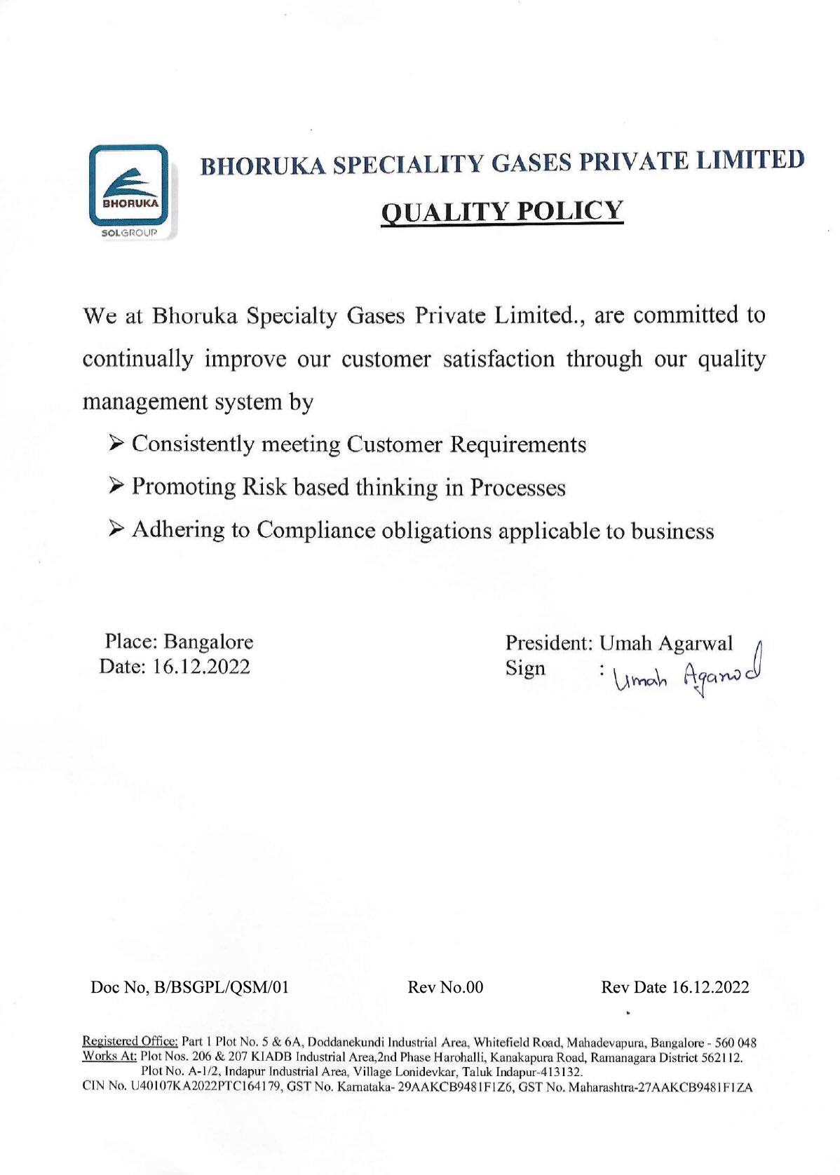 Bhoruka Specialty Gases Private Limited is certified for below systems.